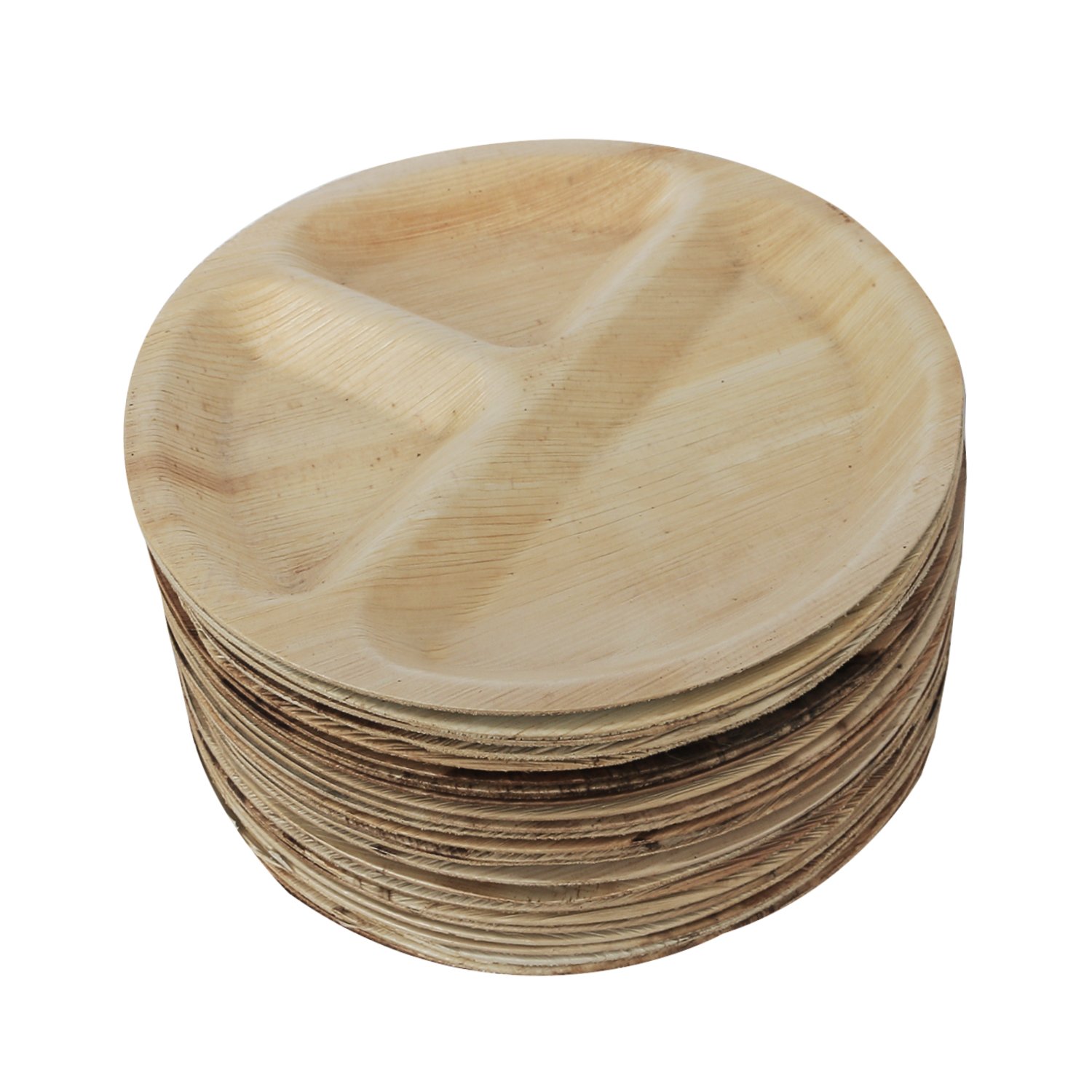Areca Leaf Plate – Disposable Party Plate – 10 inch Round Plate with 3 compartments (Pack of 25)